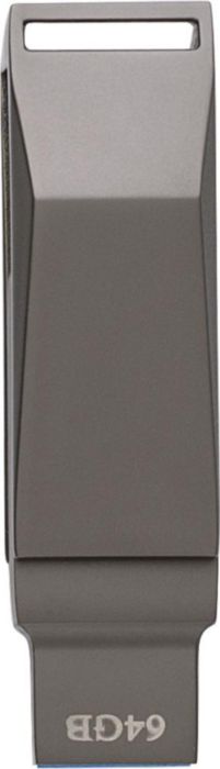USB-minne 3.0 i zinklegering. Metall, matt grafitsfinish. 64 GB kapacitet. Med twist-funktion för USB-A och USB-C. Individuellt förpackad i ett metallfodral.
