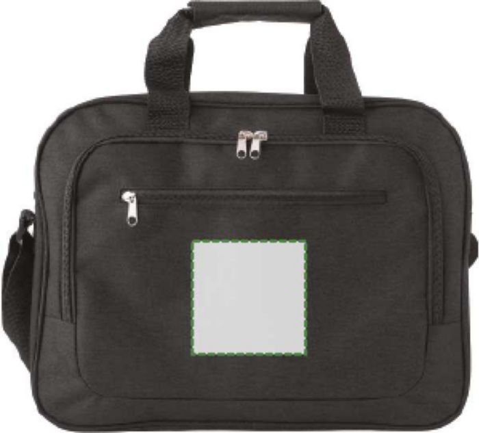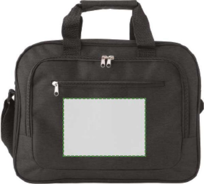 Väska i polyester (300D) för 15″ laptop med två framfickor. Reglerbar axelrem.