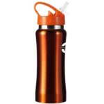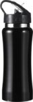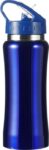 Vattenflaska, 0,6 L, i rostfritt stål och härliga färger med uppfällbart sugrör, karbinhakeögla och stor öppning.