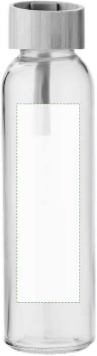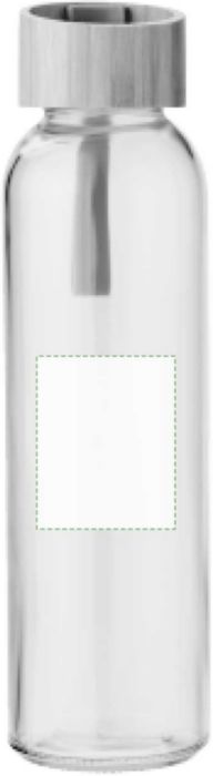 Vattenflaska i glas (500 ml) med skruvlock i bambu samt silikonband.
