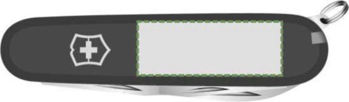 Victorinox fickkniv med tolv funktioner: pincett, litet och stort blad, nyckelring, konservöppnare, skruvmejslar (3 och 6 mm), korkskruv, tandpetare, flasköppnare, trådavdragare, samt brotsch, stans och sysyl. Individuellt förpackad i presentförpackning.