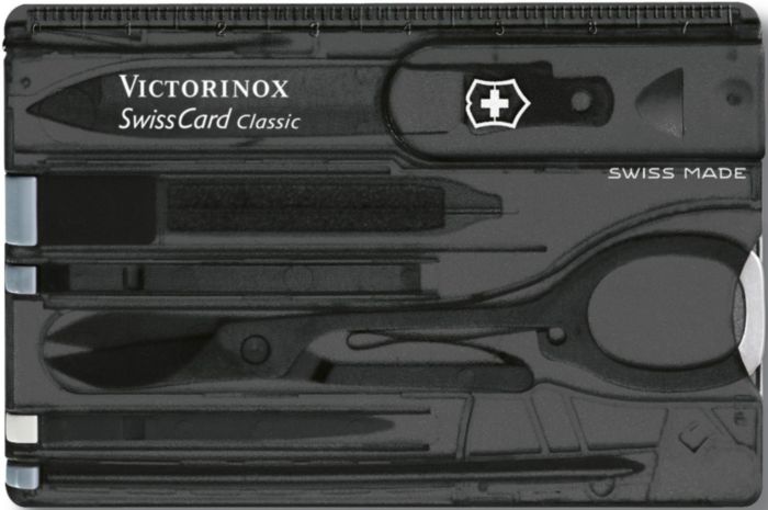 Victorinox SwissCard klassiskt multifunktionellt verktyg, inklusive: brevöppnare, pincett, sax, nagelfil, tandpetare, ballpen och stålstift. Individuellt förpackad i presentförpackning.