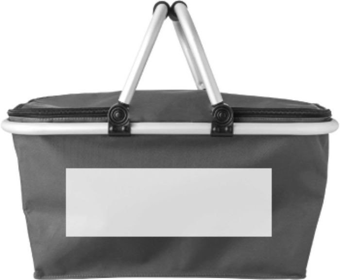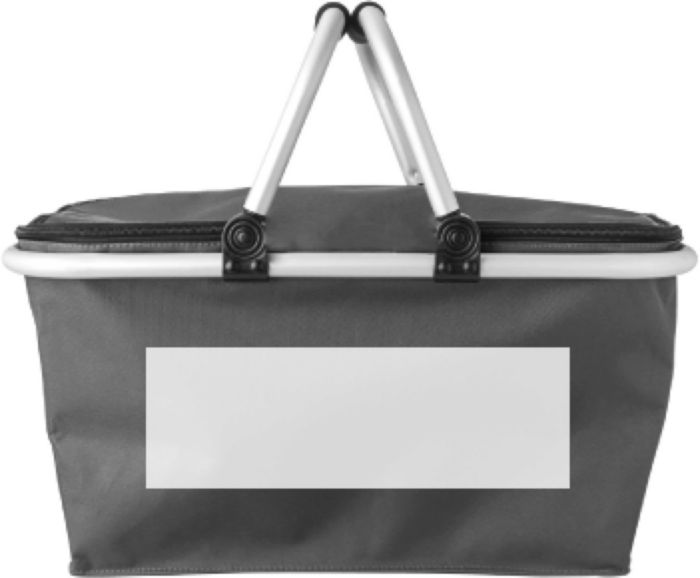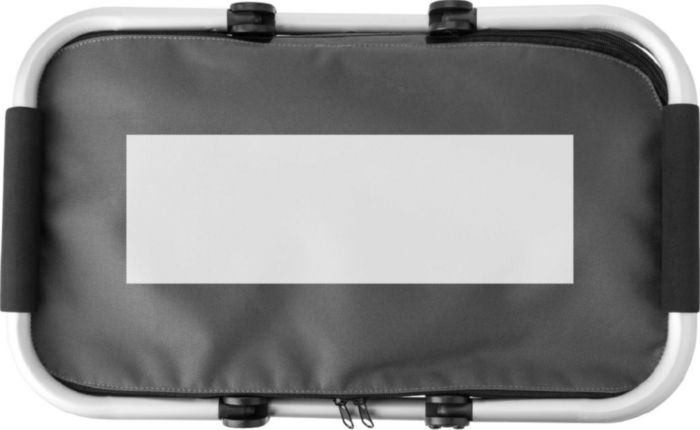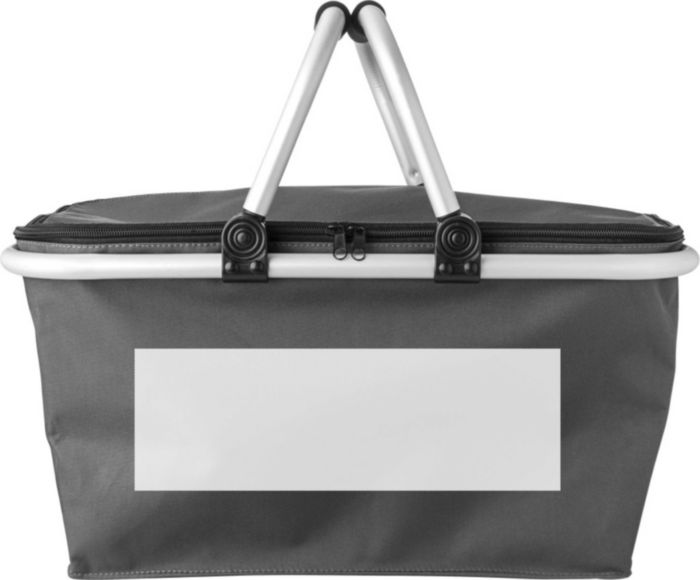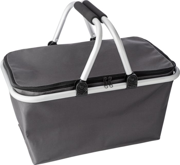 Vikbar shoppingkorg i polyester (320-330 g), med aluminiumram samt bärhandtag, grepp i EVA. Stängning med dragkedja.