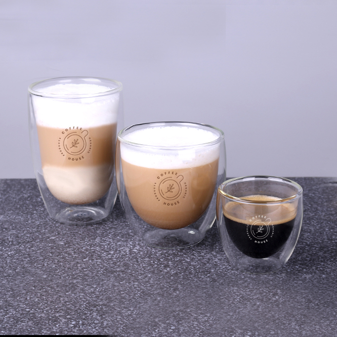 Extraordinärt dubbelväggigt glas. Den populära glasmodellen i två nya storlekar. Det dubbelväggiga glaset ger en fantastisk effekt av att suspendera drinken inuti och exponerar perfekt dekorationen som är placerad på den.