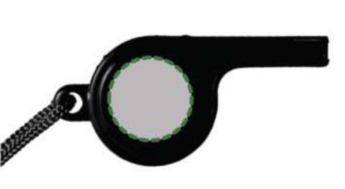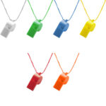 Visselpipa i plast med snöre (levereras i förpackning om 48 st).