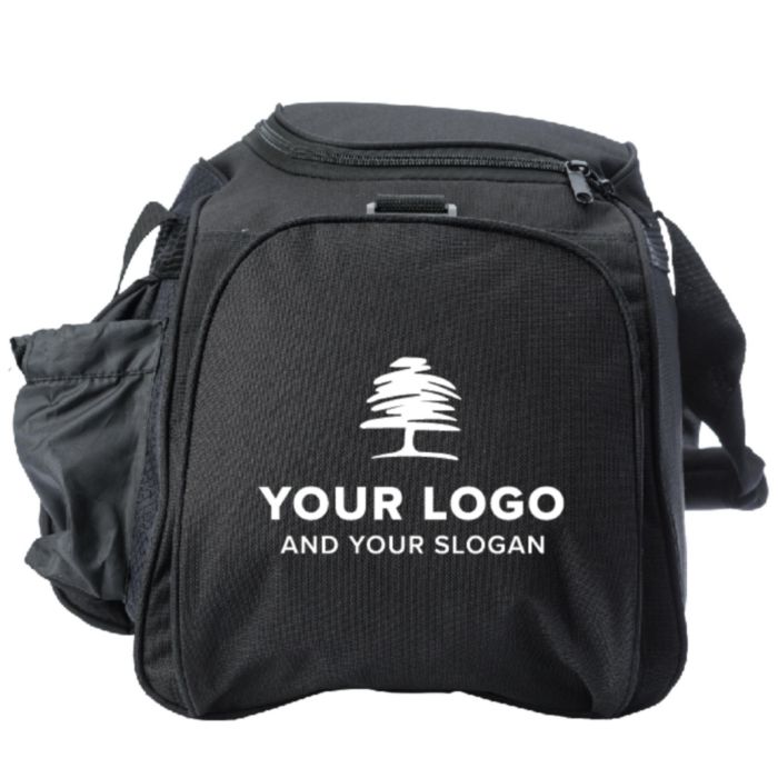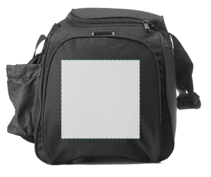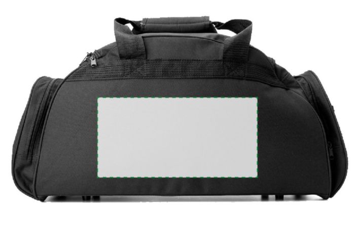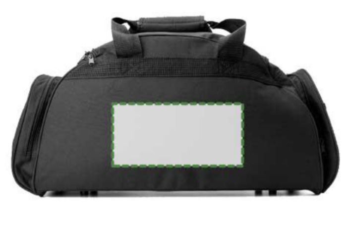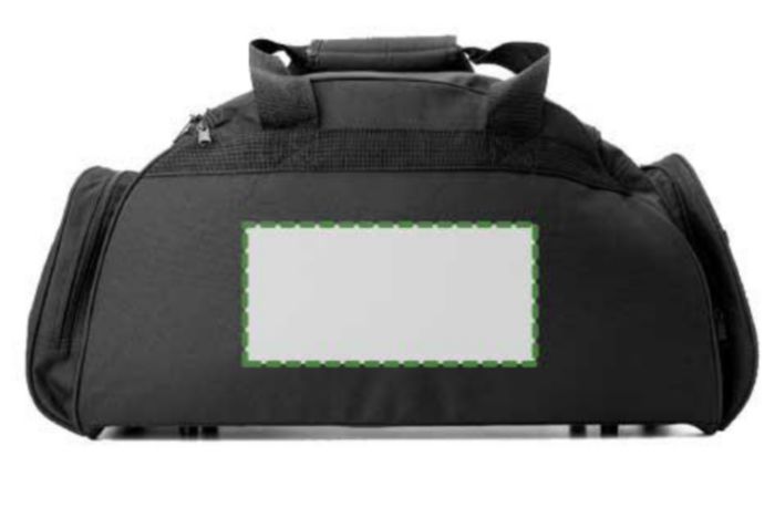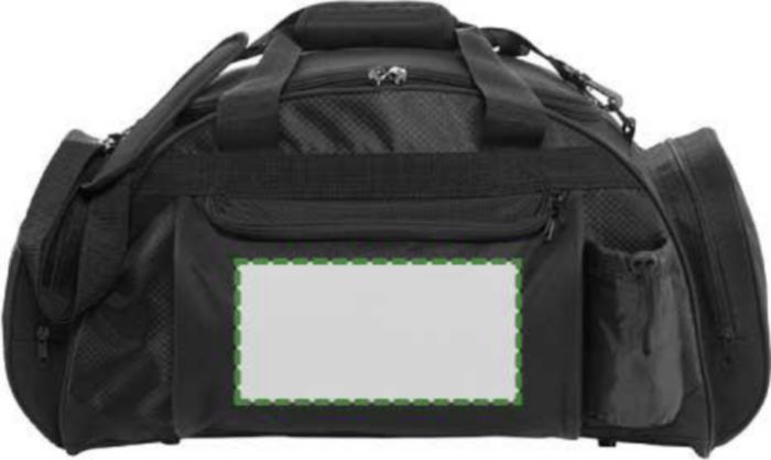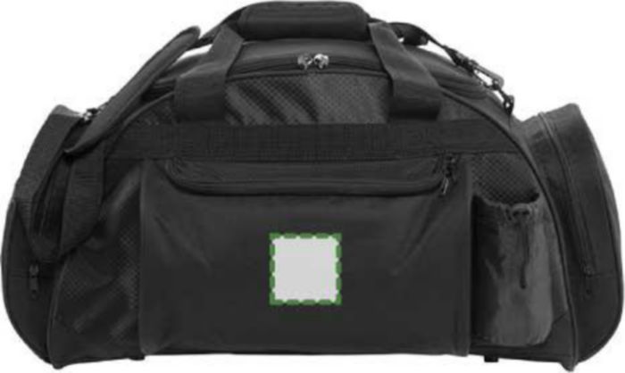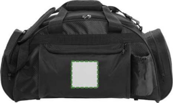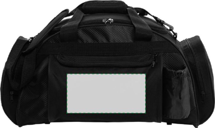 Weekendbag i polyester (600D) med stor ficka och dragkedja fram, en sidoficka för t ex vattenflaska, en sidoficka för headset och ett stort huvudfack med dragkedja.