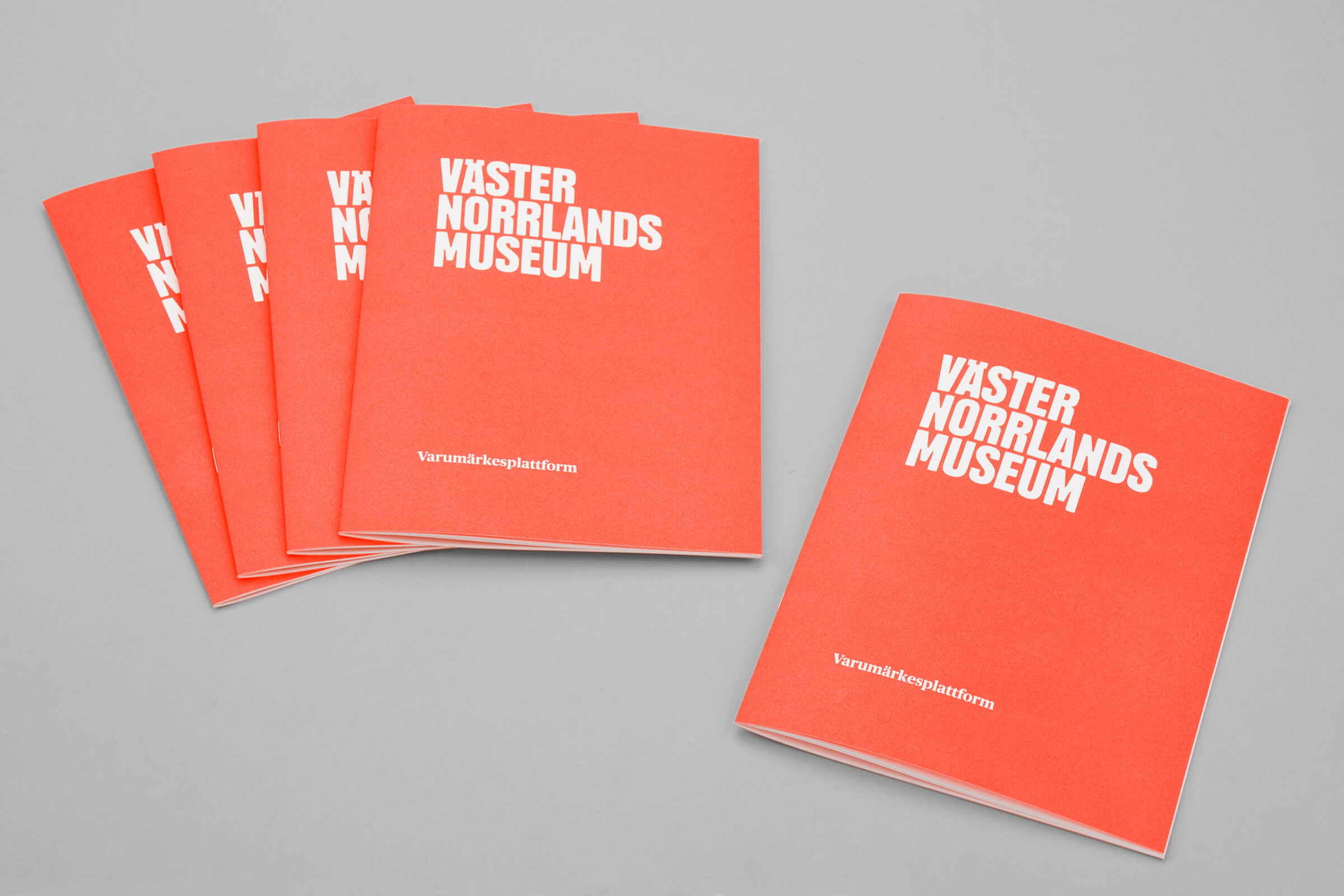 Klammerhäftad broschyr som tryckts med fluorescerande PMS 805 och svart.