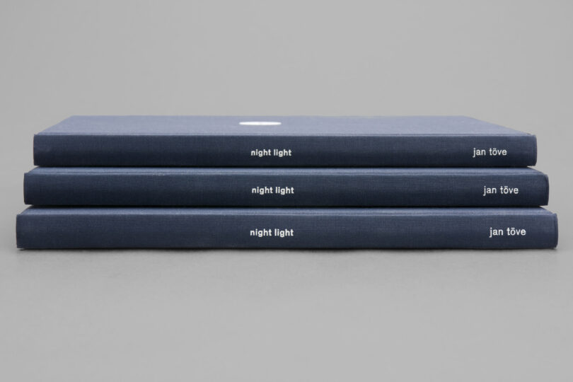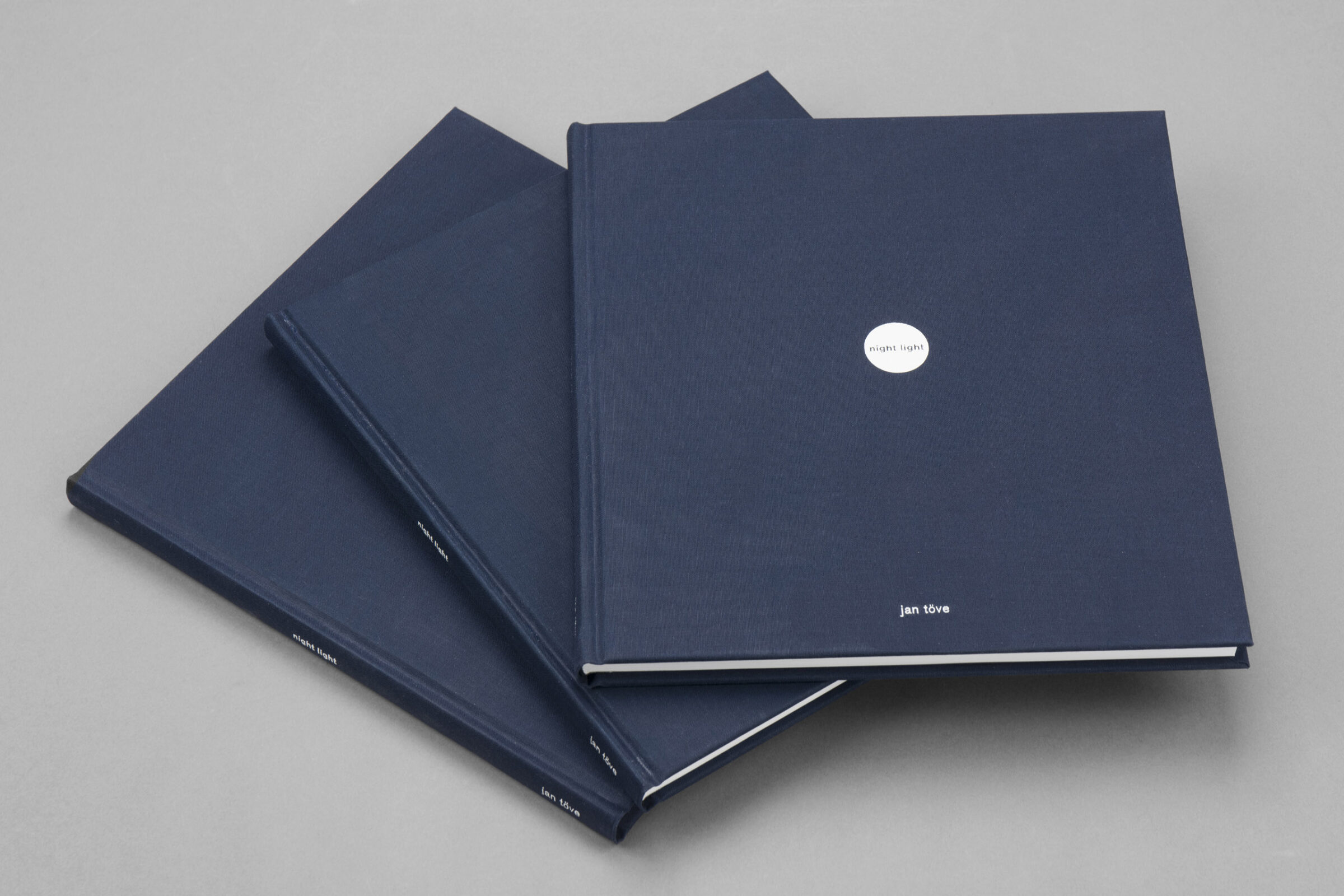 Linnetrådshäftat hårdband överdraget med blått klotmaterial. Mörkgrått kapitälband och vit foliering på pärmens framsida och rygg.