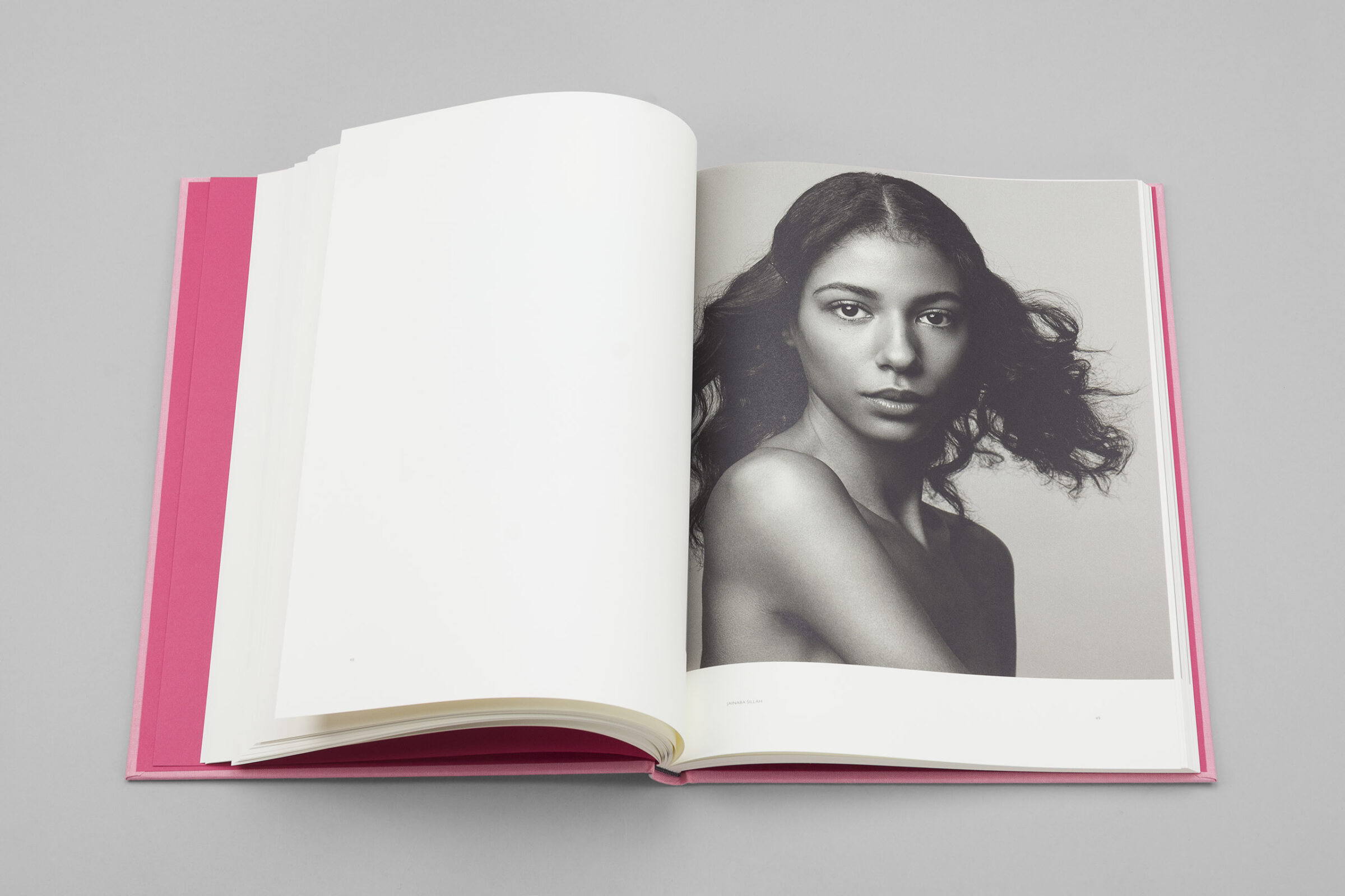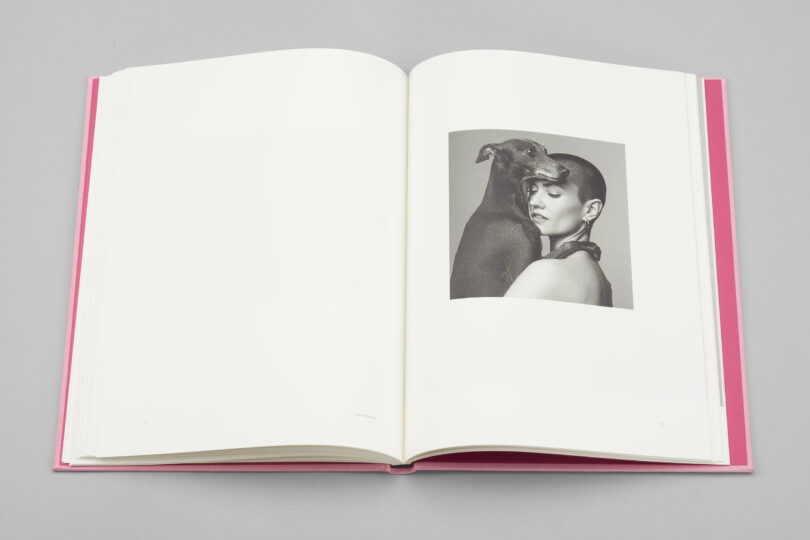 Svart blank foliering på framsida och rygg. Tip-in bild monterad för hand i präglad platta.
