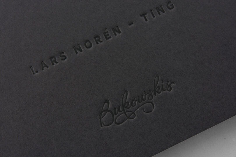 Trådhäftat hårdband med tryckt överdrag, foliering i matt svart folie. Tryckta för- och eftersättsblad.