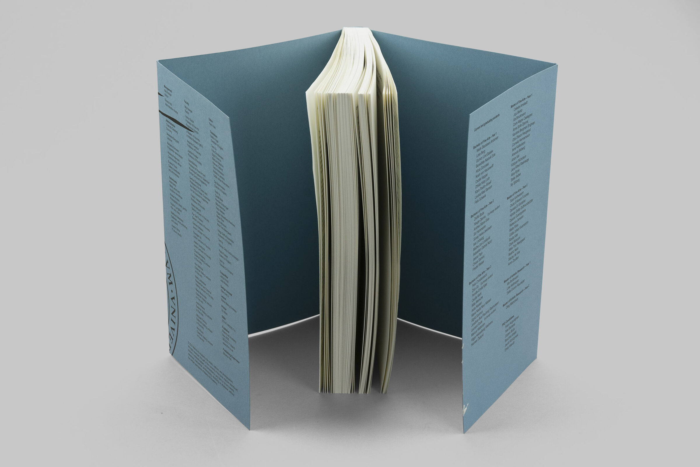 Trådhäftat mjukband med 8-sidigt flikomslag.