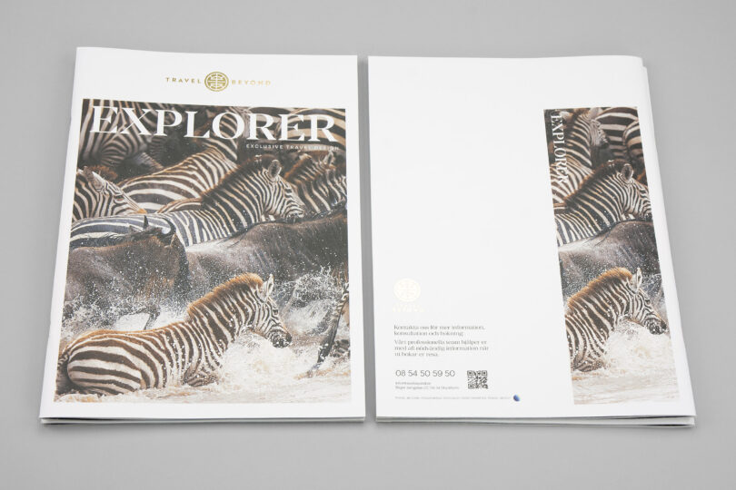 Digitaltryckt omslag med halvklot (Brillianta svart). Handmonterade gummiband och öljetter.