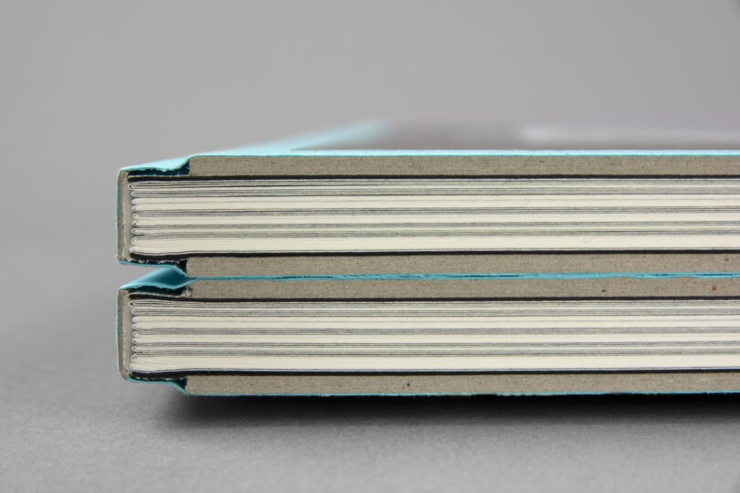 Omslag: Colorplan Turquoise 135g. Inlaga: Munken Pure Rough 150g.